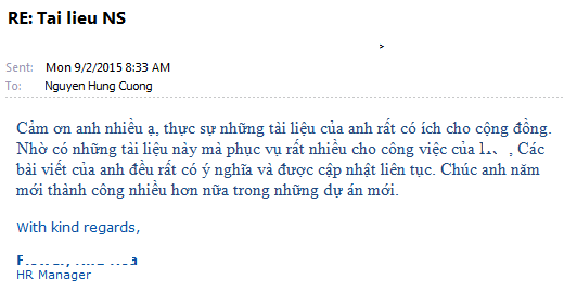 Cám ơn anh đã quan tâm và ủng hộ Cường trong nỗ lực duy trì các công cụ cho cộng đồng. Về các tài liệu HR, C thực lòng vẫn muốn anh cân nhắc kỹ về nhu cầu của mình tại: http://kinhcan.net/hrform